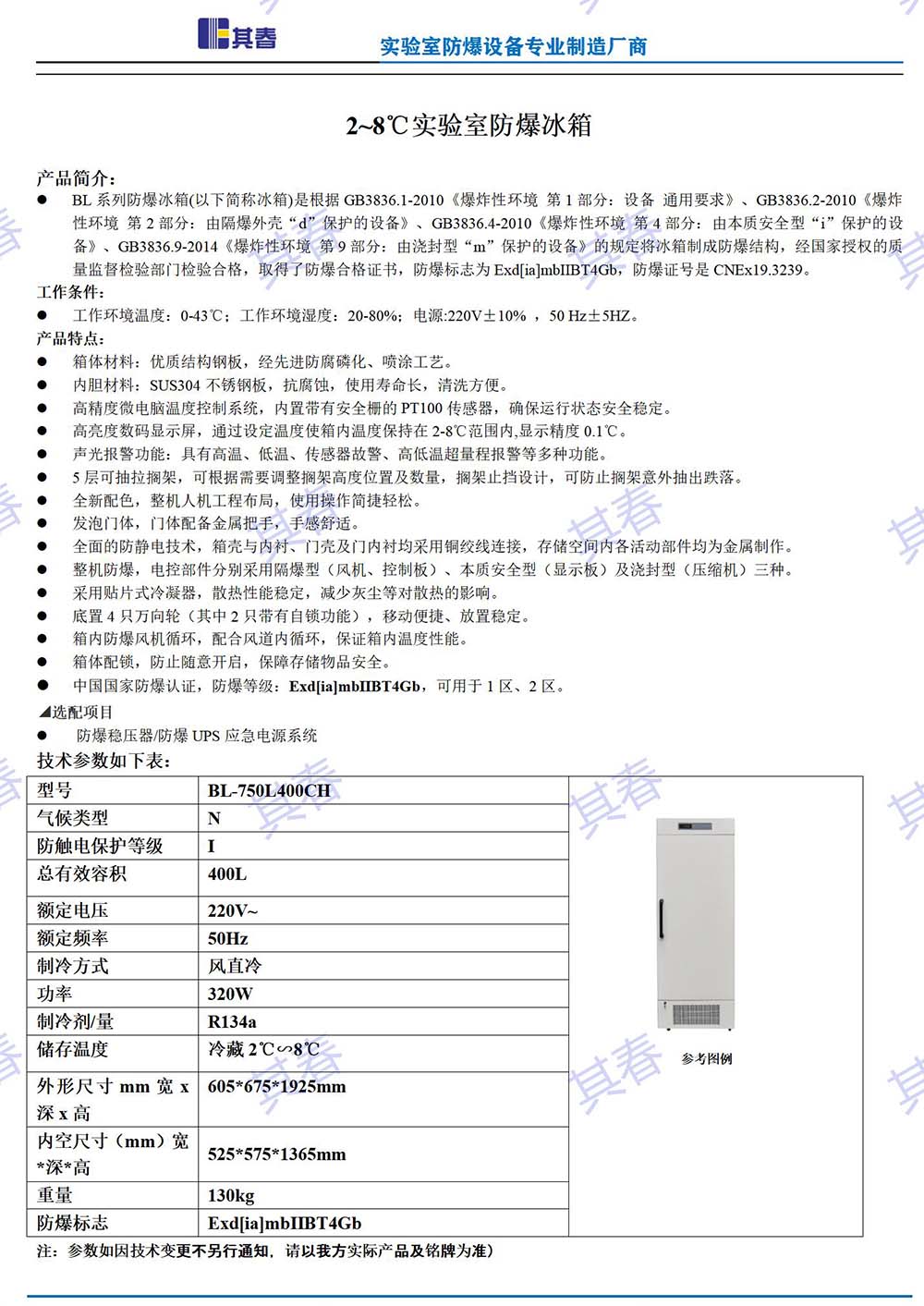 BL-460CL防爆冷藏柜