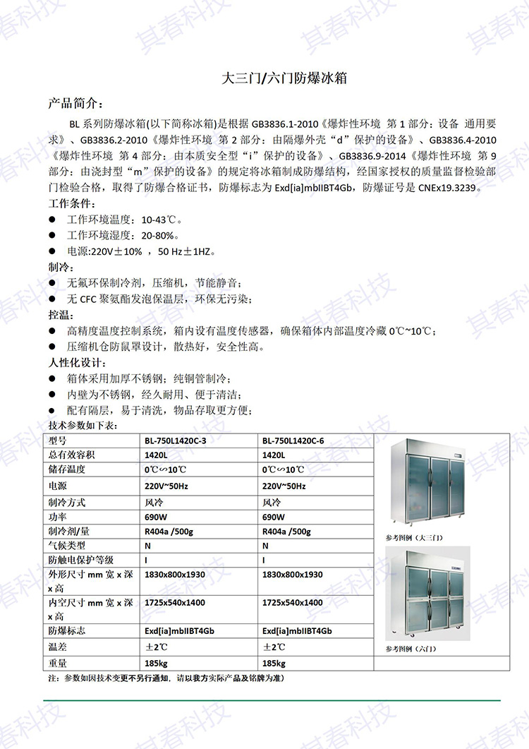 BL-750L1420C-3防爆冷藏柜三开门大容量防爆冷柜