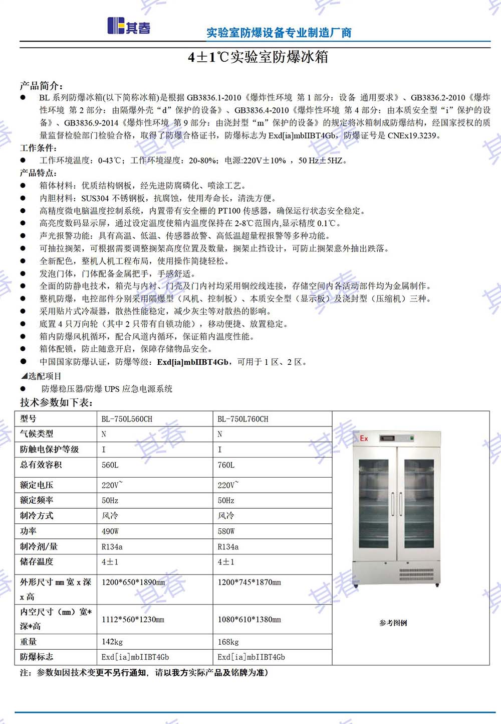 2023-06-05 3392BL系列4度恒温防爆冰箱具有以下特点:箱体材料采用优质结构钢板,经过先进防腐磷化、喷涂工艺制成;内胆材料采用SUS304不锈钢板,具有抗腐蚀和使用寿命长的特点,清洗方便;高精度微电脑温度控制系统内置带有安全栅的PT100传感器,确保运行状态的安全稳定;高亮度数码显示屏,通过设定温度使箱内温度保持在2-8℃范围内,显示精度为0.1℃;4度恒温防爆冰箱声光报警功能具有高温、低温、传感器故警、高低温超量程报警等多种功能;可抽拉搁架可根据需要调整搁架高度位置及数量,搁架止挡设计可防止搁架意外抽出跌落;全新配色,整机人机工程布局,使用操作简捷轻松;发泡门体,门体配备金属把手,手感舒适;全面的防静电技术,箱壳与内衬、门壳及门内衬均采用铜绞线连接,存储空间内各活动部件均为金属制作;整机防爆,电控部件分别采用隔爆型(风机、控制板)、本质安全型(显示板)及浇封型(压缩机)三种;4度恒温防爆冰箱采用贴片式冷凝器,散热性能稳定,减少灰尘等对散热的影响;底置4只万向轮(其中2只带有自锁功能),移动便捷、放置稳定;箱内防爆风机循环,配合风道内循环,保证箱内温度性能;4度恒温防爆冰箱箱体配锁,防止随意开启,保障物品安全。